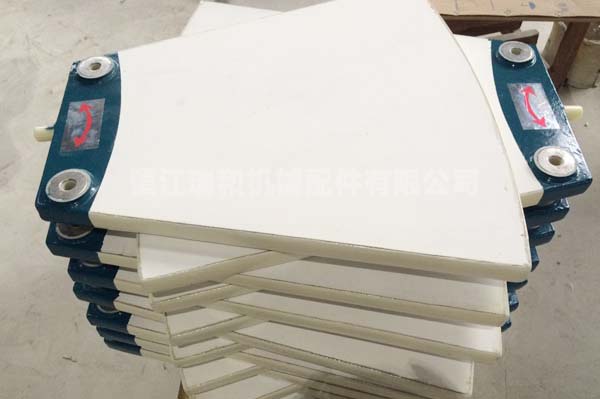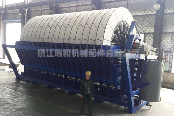 一種用于細(xì)煤泥回收的陶瓷過(guò)濾機(jī),有一個(gè)機(jī)座,所述機(jī)座陶瓷過(guò)濾機(jī)陶瓷過(guò)濾機(jī)下部設(shè)有一個(gè)細(xì)煤泥液料槽,該細(xì)煤泥液料槽內(nèi)設(shè)有液位控制器,該細(xì)煤泥液料槽兩端設(shè)有負(fù)壓集水箱,該負(fù)壓集水箱一側(cè)裝有負(fù)壓連接組件定盤(pán),另一側(cè)裝有真空泵管道,該真空泵管道與一個(gè)真空泵連通;所述機(jī)座上設(shè)有一個(gè)煤泥回收轉(zhuǎn)子,該轉(zhuǎn)子由一個(gè)主軸、多級(jí)陶瓷過(guò)濾圓盤(pán)、卸料板、多節(jié)出水連接管道、管道支架板、負(fù)壓連接組件動(dòng)盤(pán)組成;所述煤泥回收轉(zhuǎn)子位于所述細(xì)煤泥液料槽內(nèi);所述陶瓷過(guò)濾圓盤(pán)由多個(gè)陶瓷空腔微孔板構(gòu)成,位于同一軸線(xiàn)上的多個(gè)陶瓷空腔微孔板通過(guò)所述出水連接管道連通。瑞和機(jī)械生產(chǎn)的陶瓷過(guò)濾機(jī)大大提高了工作效率。